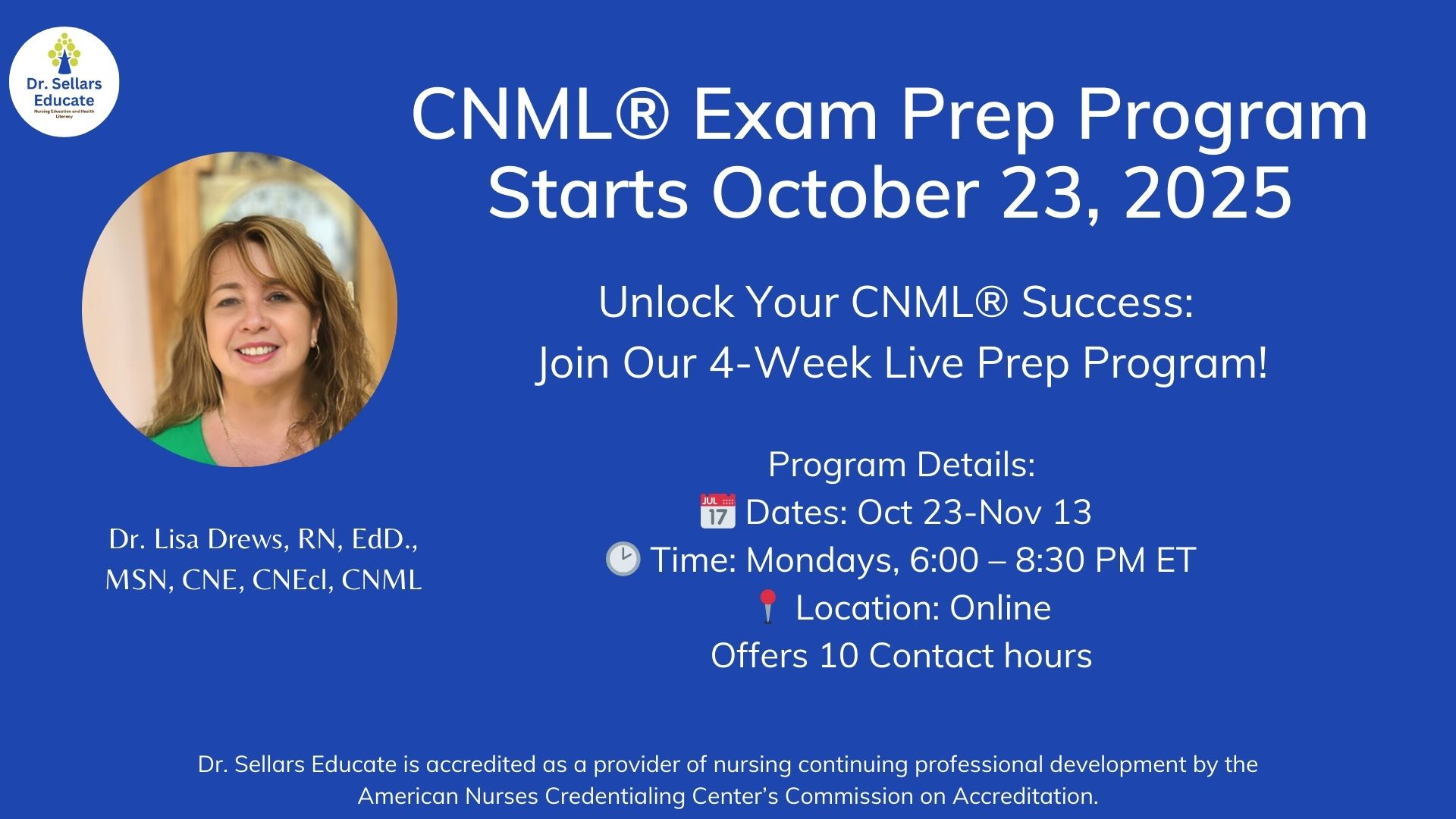 Are you ready to take the next step in your leadership journey and earn your CNML® certification? Our 4-Week Live CNML® Prep Program, led by Lisa Drews, RN, EdD, MSN, CNE, CNEcl, CNML, is designed to equip you with the essential knowledge, leadership strategies, and confidence needed to excel in the CNML® exam.